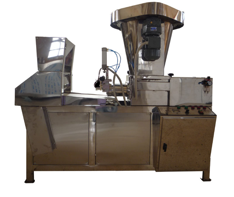 2 extruding nozzles (2 rows across output) with interchangeable adaptors to control product scaling in order to cover different diameter rang-easy change over.